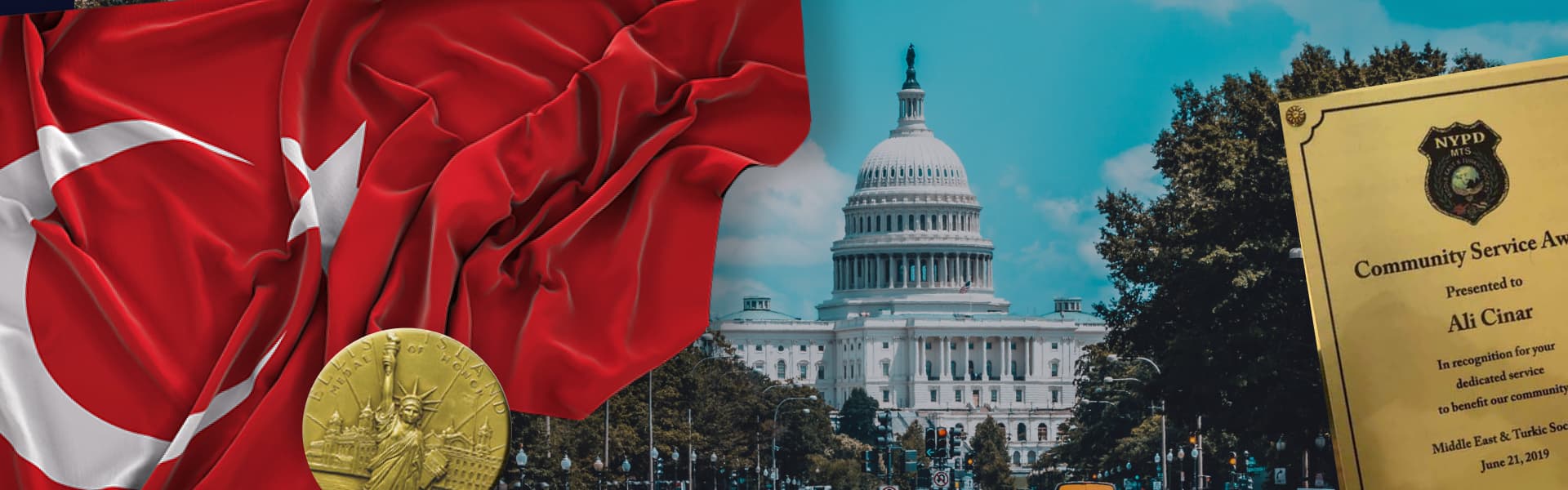 Ali Çınar, 30 yılı aşkın süredir verilen Ellis Adası Şeref Madalyası’na 2019 yılında layık görülerek bu şerefe ulaşan en genç Türk Amerikan olmayı başarmıştır. Aynı zamanda kısa bir süre önce kendisine NYPD MT&S tarafından bir “Toplum Hizmeti Ödülü” verilmiştir.